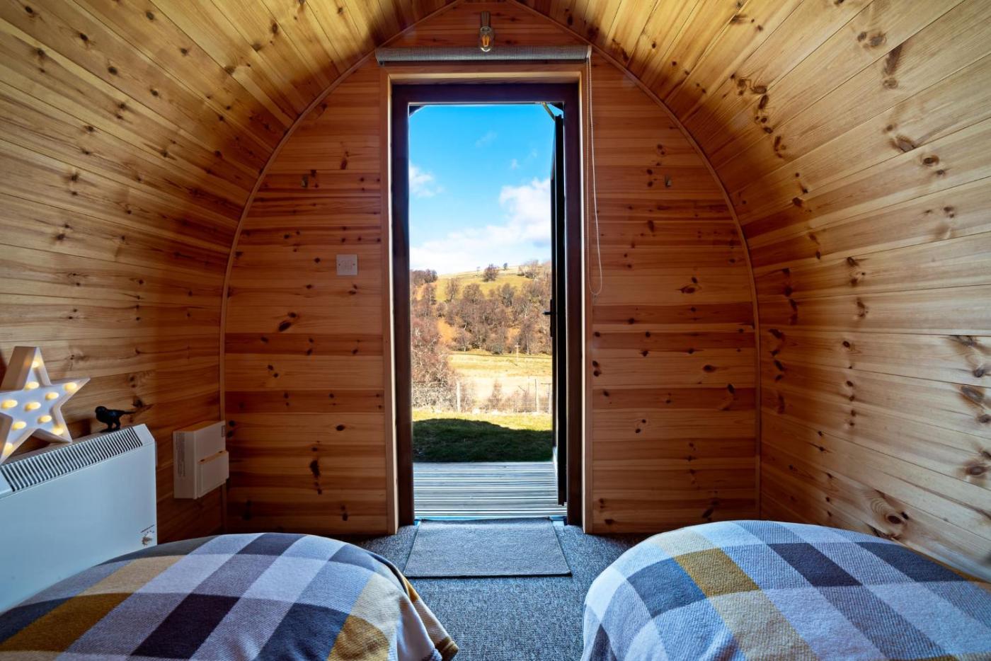 Camping Pod. This camping pod has a mountain view and river view, and a fire bowl for barbeques. It also has a private deck area, and its own picnic bench. ;