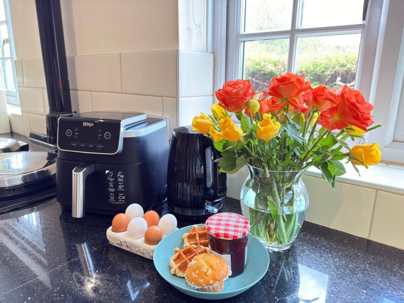 Two-Bedroom House. The fireplace is the standout feature of this holiday home. The well-fitted kitchen has a stovetop, a refrigerator, a dishwasher and kitchenware. The spacious holiday home features a flat-screen TV with streaming services, a washing machine, a private entrance, a tea and coffee maker as well as garden views. The unit has 3 beds.