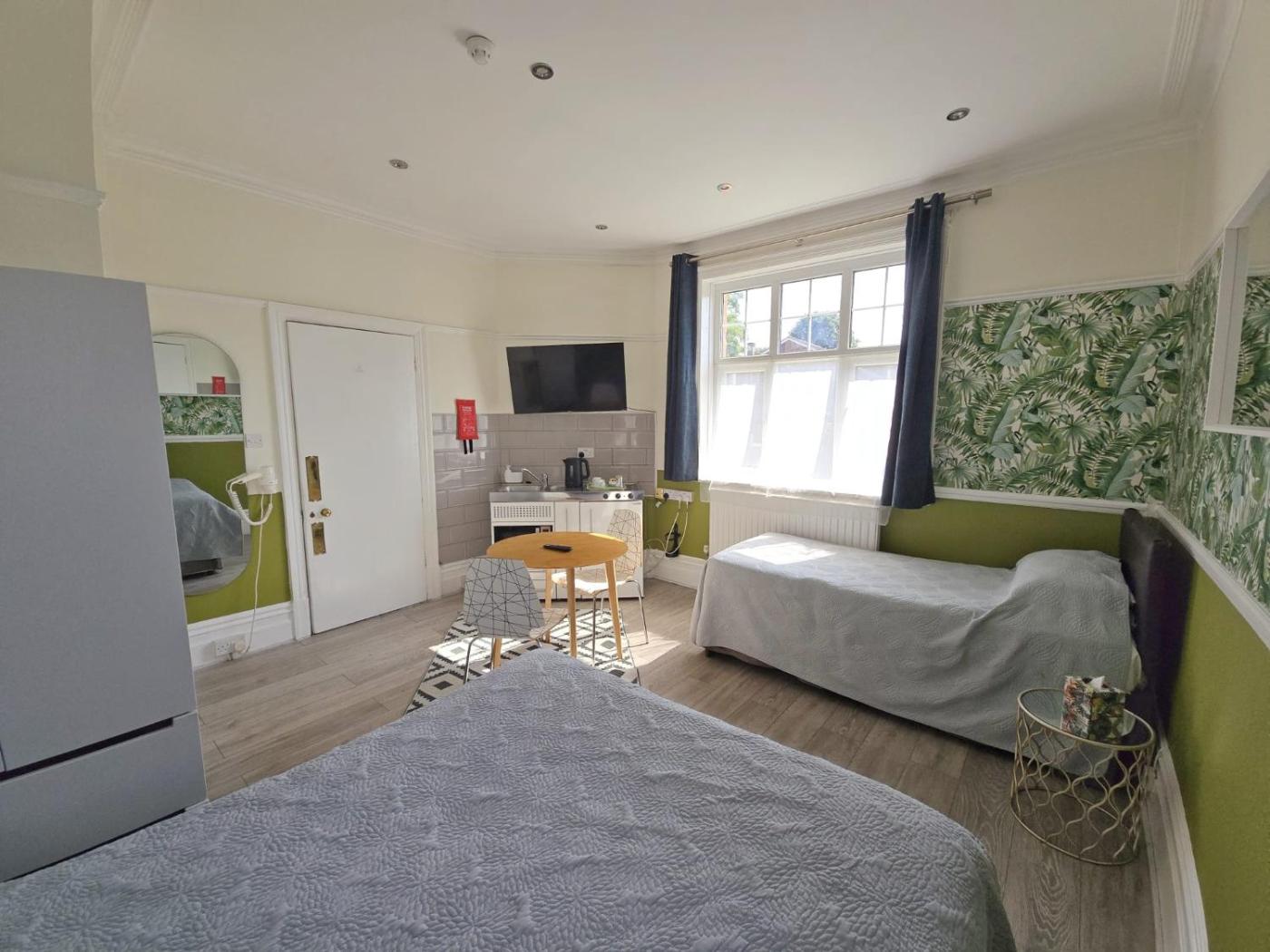 Studio. Featuring free toiletries, this studio includes a private bathroom with a shower and a hairdryer. This studio has a tea and coffee maker, heating and a flat-screen TV. The unit has 2 beds. ;
