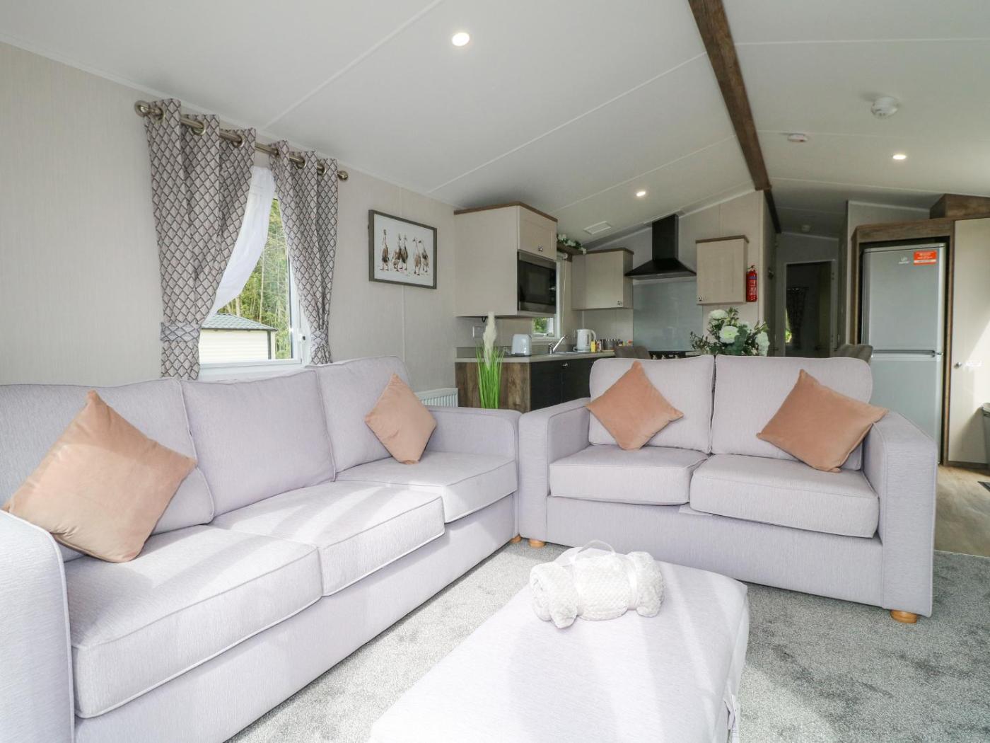 Holiday Home. This holiday home offers a hot tub. This holiday home comprises 2 bedrooms, a seating area with a sofa and 1 bathroom with a walk-in shower. The well-fitted kitchen features a stovetop, a refrigerator, an oven and a microwave. The holiday home provides a dining area, a wardrobe, an electric kettle, heating, as well as a TV. The unit offers 3 beds.
