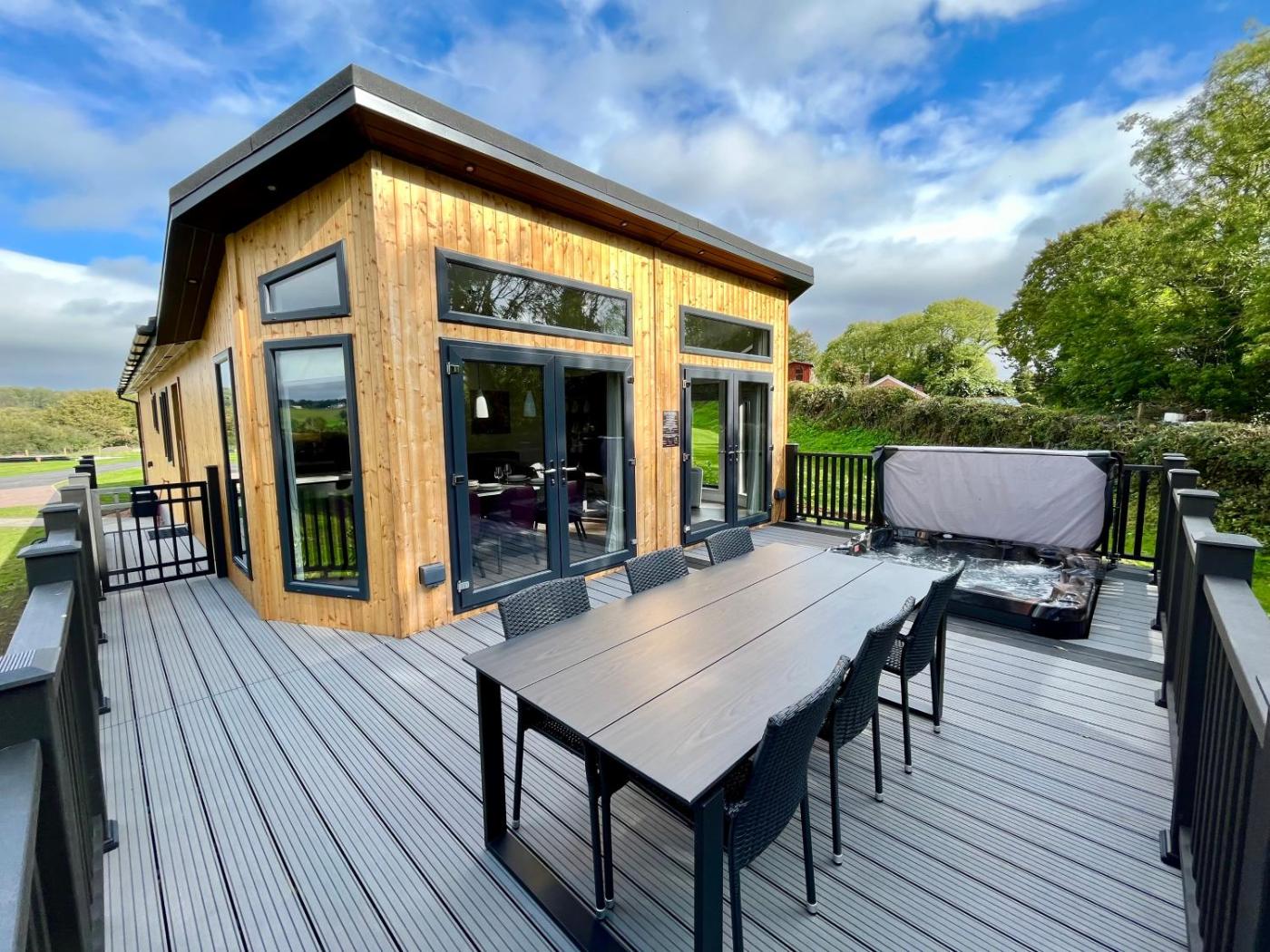 Two-Bedroom Chalet. Guests will have a special experience as this chalet features a hot tub. This spacious chalet is comprised of 1 living room, 2 separate bedrooms and 2 bathrooms with a bath and free toiletries. Guests can make meals in the kitchen that is fitted with a refrigerator, a dishwasher, kitchenware and an oven. The chalet offers a flat-screen TV, a washing machine, a private entrance, a coffee machine as well as garden views. The unit offers 3 beds. ;