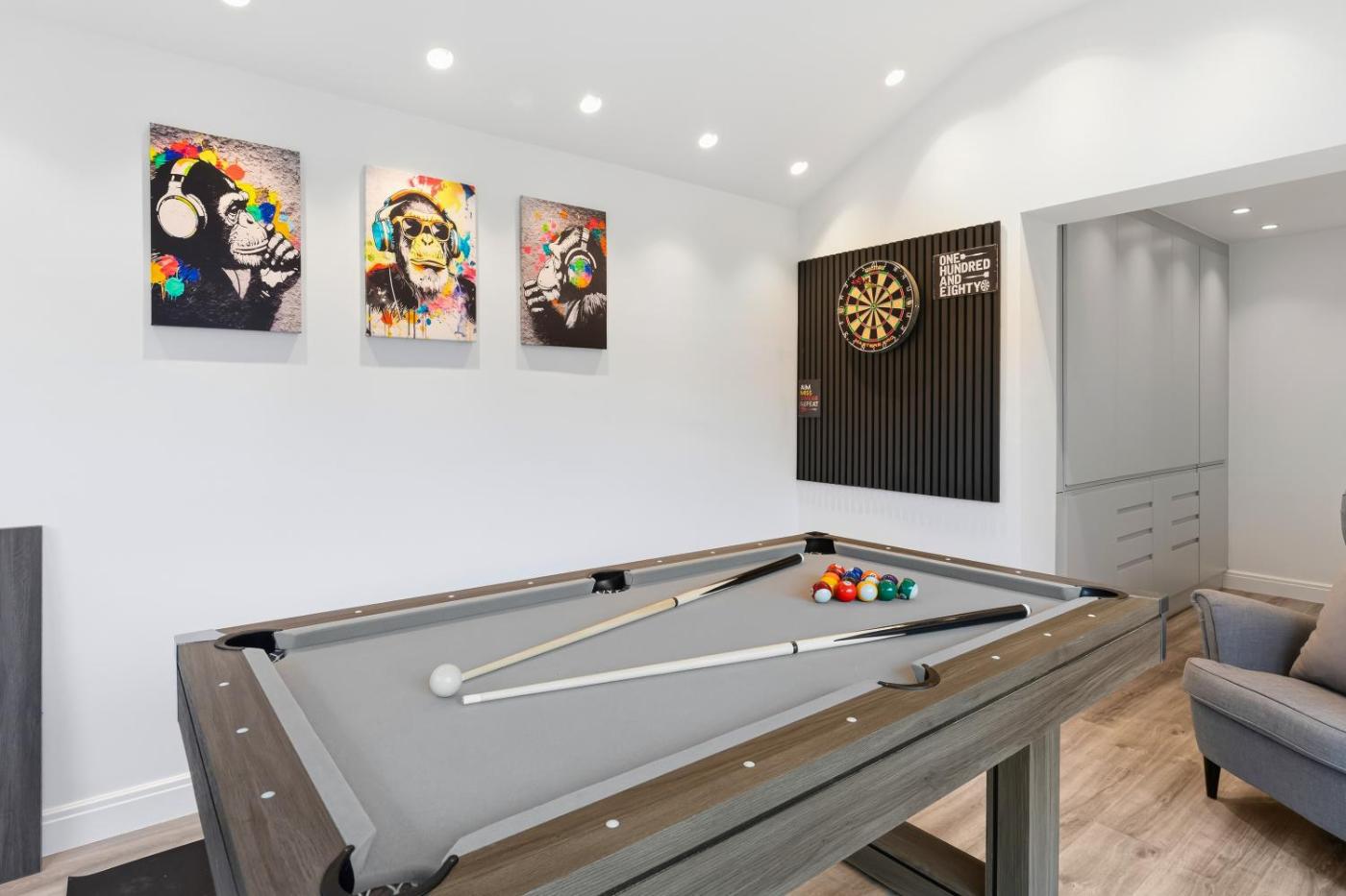 You can play billiards and darts at the holiday home. An indoor play area is also available at Large 5BR - Perfect for Contractors & Long Stays, while guests can also relax in the garden.