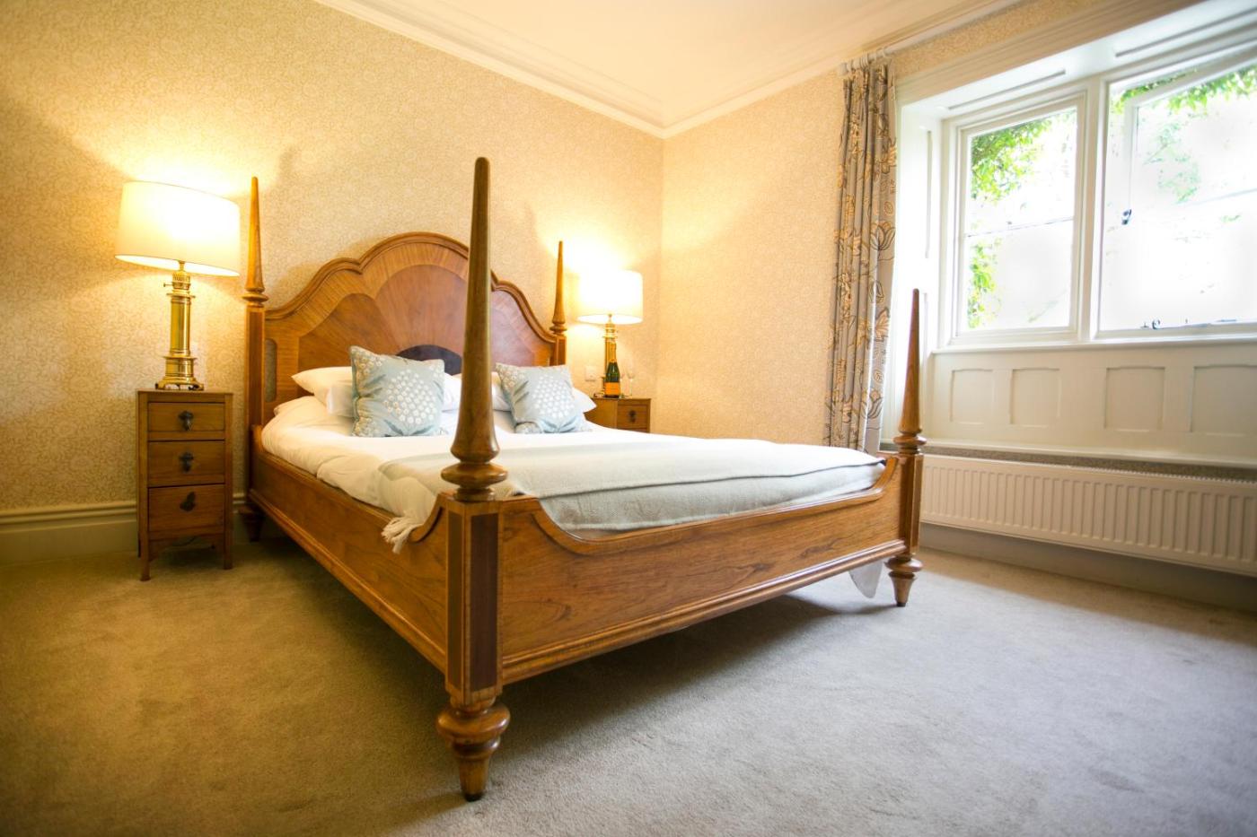 Deluxe Double Room. This room was one of the old master bedrooms, and features a fireplace and large windows overlooking the gardens. ;