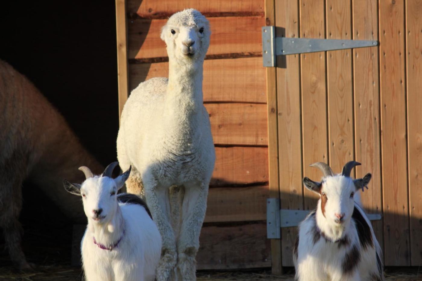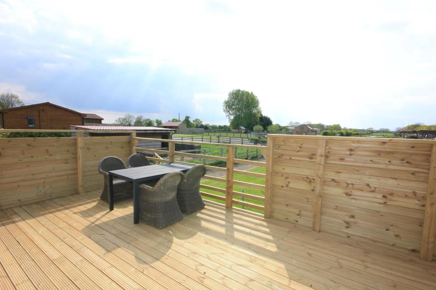 Two-Bedroom Lodge with Hot Tub. 4Paddock gold hot tub lodge – 2 bedrooms sleeping up to 4 The modern open plan living area has a vaulted ceiling and oak flooring. The living area has a leather suite , a 55″ smart tv and an oak dining table. The fully equipped kitchen includes a centre island .The patio doors lead out onto private decking with your own hot tubyou can relax and look out at the alpaca and the orchard beyond. The master bedroom has a double bed and en suite shower room. There is a second twin bedroom and a family bathroom. A maximum of 2 well behaved dogs are welcome (charge of £10 per dog per stay) ;