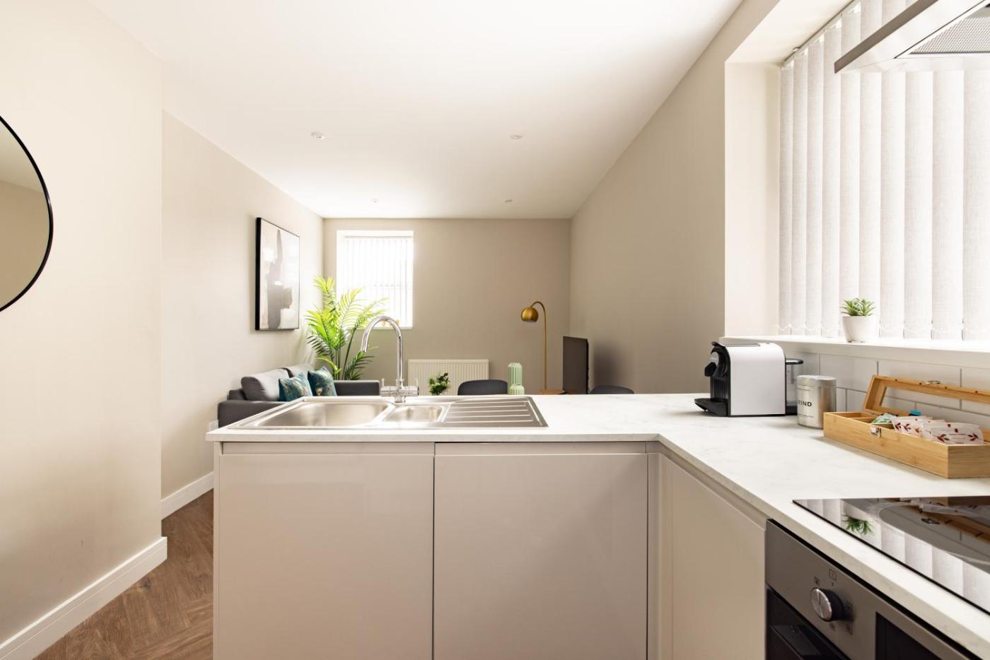 Superior One Bedroom Apartment. The apartment has a private bathroom, a washing machine, a tea and coffee maker, as well as a seating area with a flat-screen TV. Guests can make meals in the kitchen that features a stovetop, a refrigerator, kitchenware and an oven. The apartment features a dining area, a wardrobe, tumble dryer, a sofa and a TV. The unit has 1 bed.