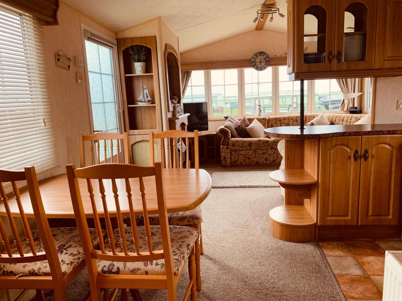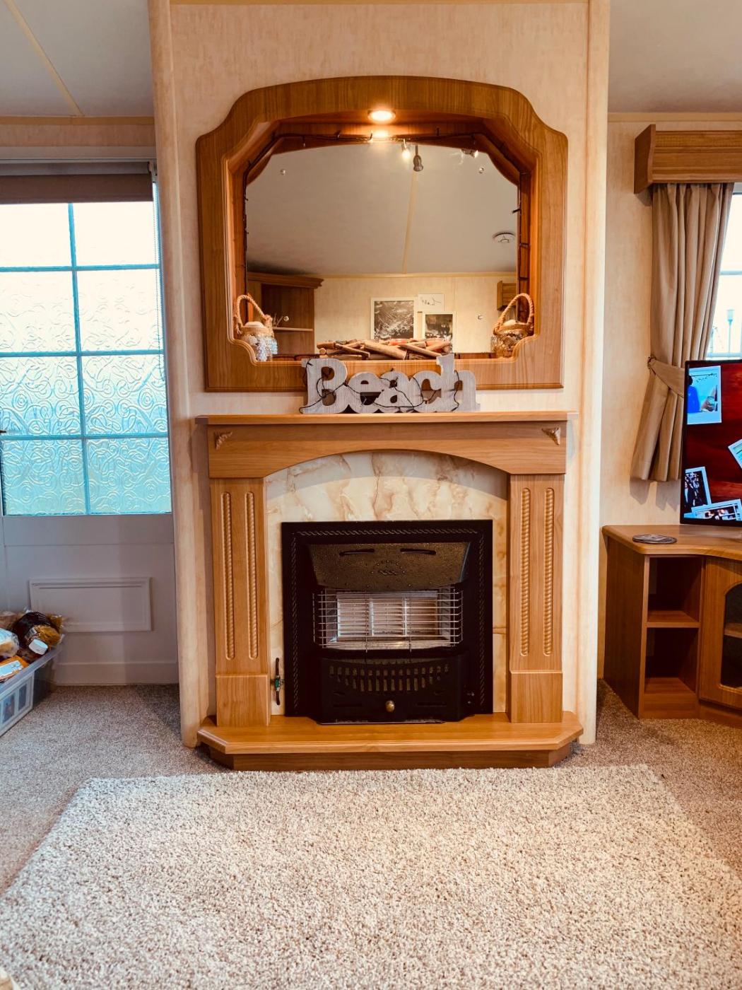 Caravan. The fireplace is a top feature of this mobile home. Boasting a private entrance, this mobile home comes with 1 living room, 2 separate bedrooms and 1 bathroom with a shower and a hairdryer. The well-equipped kitchen has a stovetop, a refrigerator, kitchenware and an oven. The mobile home features soundproof walls, a tea and coffee maker, a seating area, a flat-screen TV with streaming services, as well as sea views. The unit has 3 beds.
